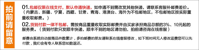 4、店铺宝贝图片100%实物拍摄,尽可能与实物一致,但因拍摄时灯光问题、拍摄角度不同、不同显示器以及个人对色彩的理解角度不同而导致的色差问题无可避免,此类问题不属质量问题,请以收到的实物为准。